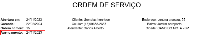 8 - Adicionado campo de data de agendamento no módulo Ordem de serviço de modo a ficar explicito para o cliente quando será executado o serviço.