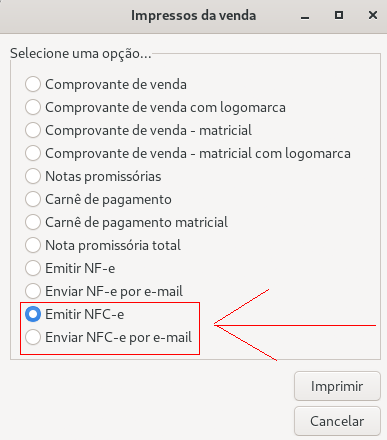 1 - Inclusão da opção de comprovante de condicional para impressora matricial: